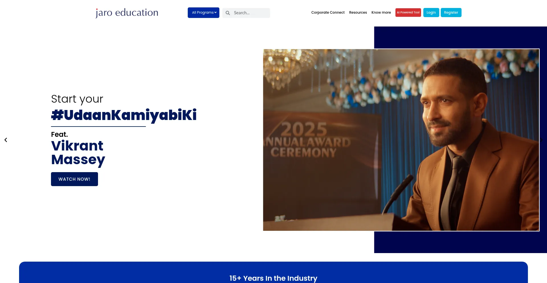 jaroeducation.com 使用 Bootstrap,这是一个广泛采用的开源响应式网页开发框架。Bootstrap 通过标准化组件和样式实现移动友好界面的高效创建。