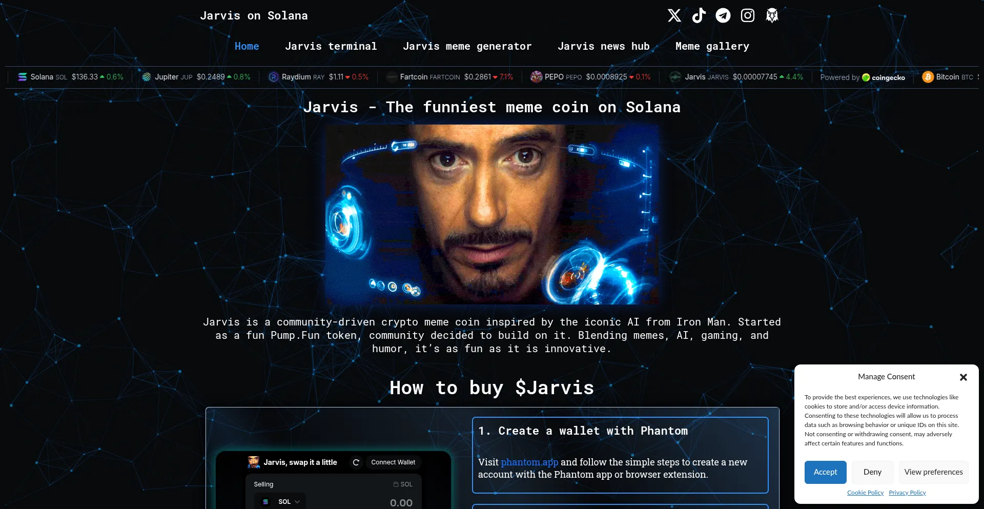 Jarvis meme coin, the AI-powered community crypto on Solana. Explore the Jarvis Terminal, memes, AI tools, picture generators, and much more.