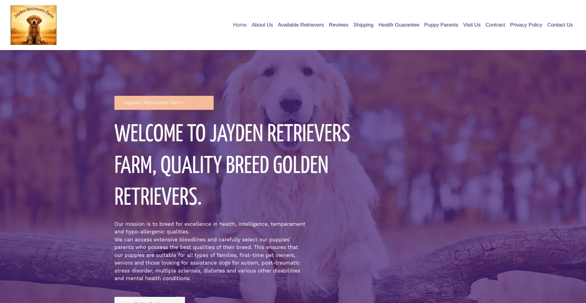 该网站实现数据收集表单,请求个人信息,包括姓名、电子邮件地址、电话号码或其他敏感详细信息。用户应验证 jaydenretrieversfarm.com 的合法性并在提交个人数据前查看隐私政策。