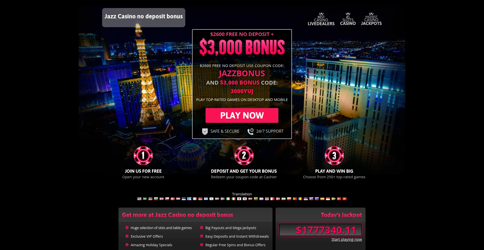Jazz Casino no deposit bonus 2025. Redeem your no deposit bonus using the code: JAZZBONUS at Jazz Casino