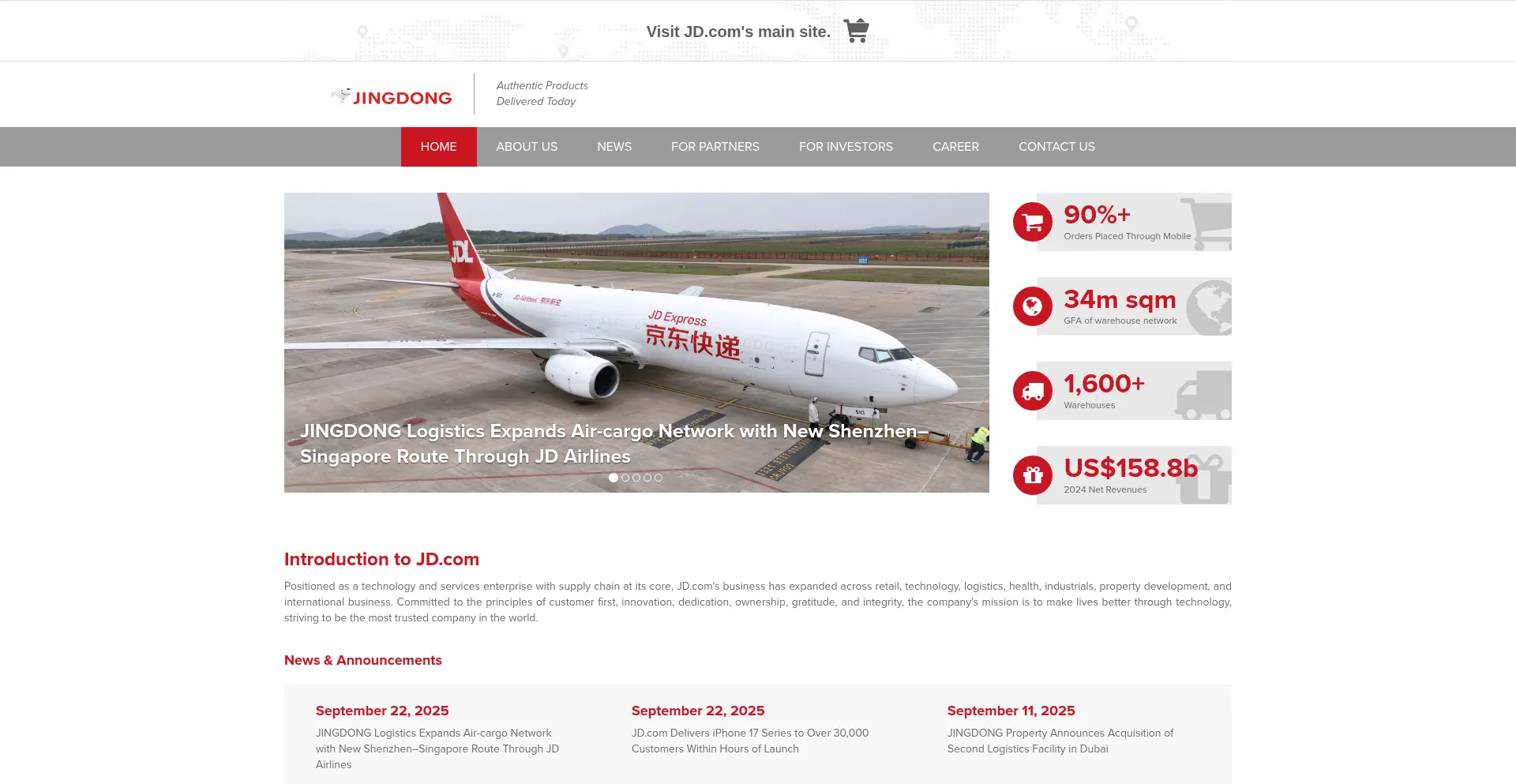 JD.com is the largest retailer in China, a member of the NASDAQ100 and a Fortune Global 500 company.