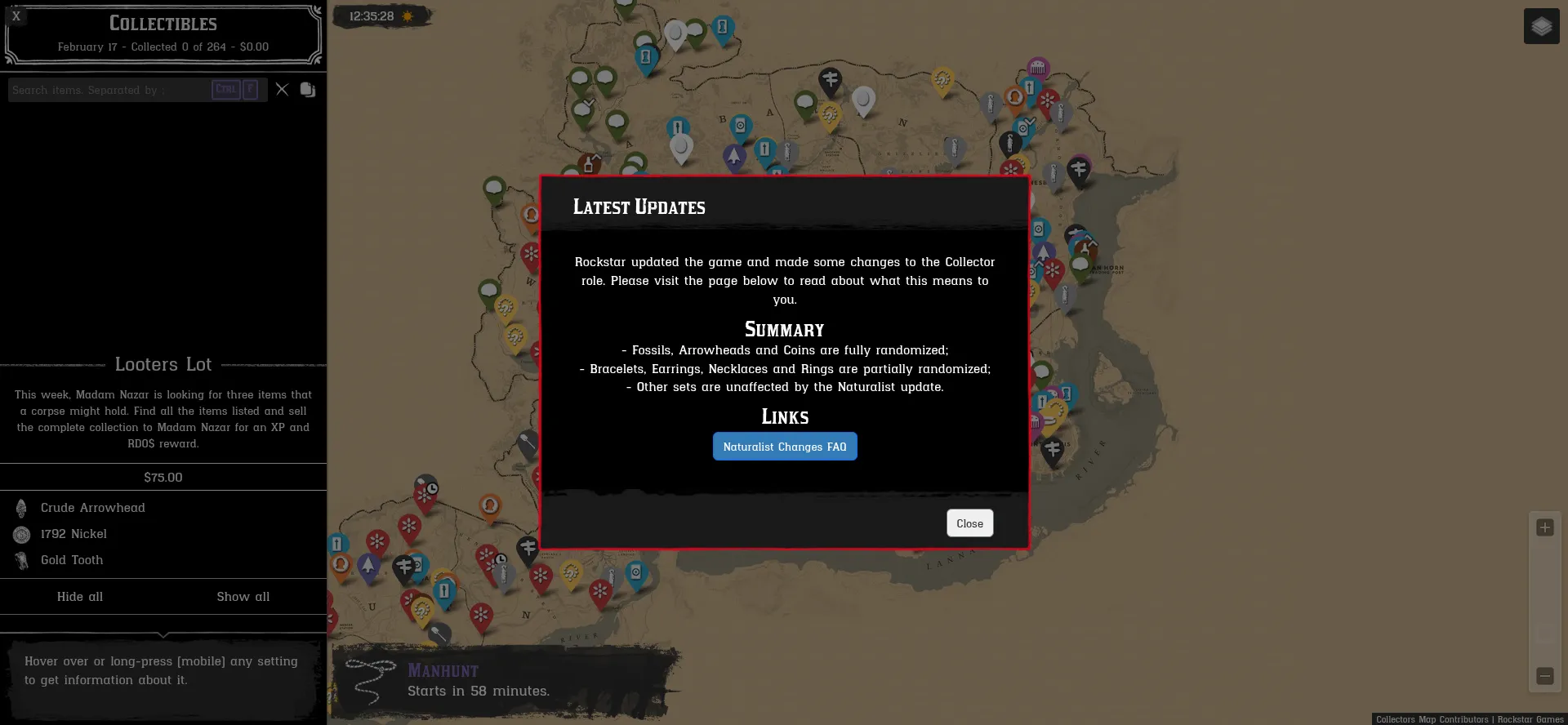 Red Dead Online Collectors Map. Find all collectibles across the world and sell to Madam Nazar.