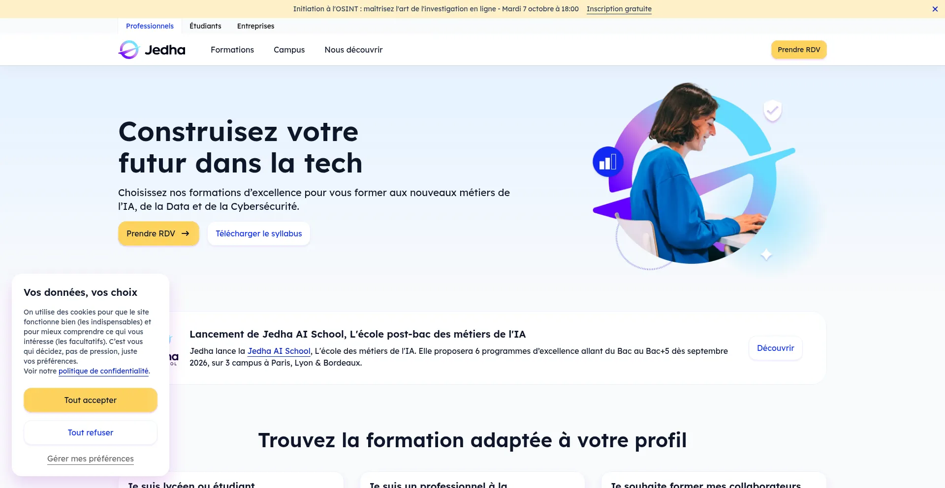 Découvrez nos formations aux métiers de l’IA, de la Data et de la Cybersécurité, adaptées à tous les profils : Bachelors & Mastères pour les étudiants & lycéens, Boot...