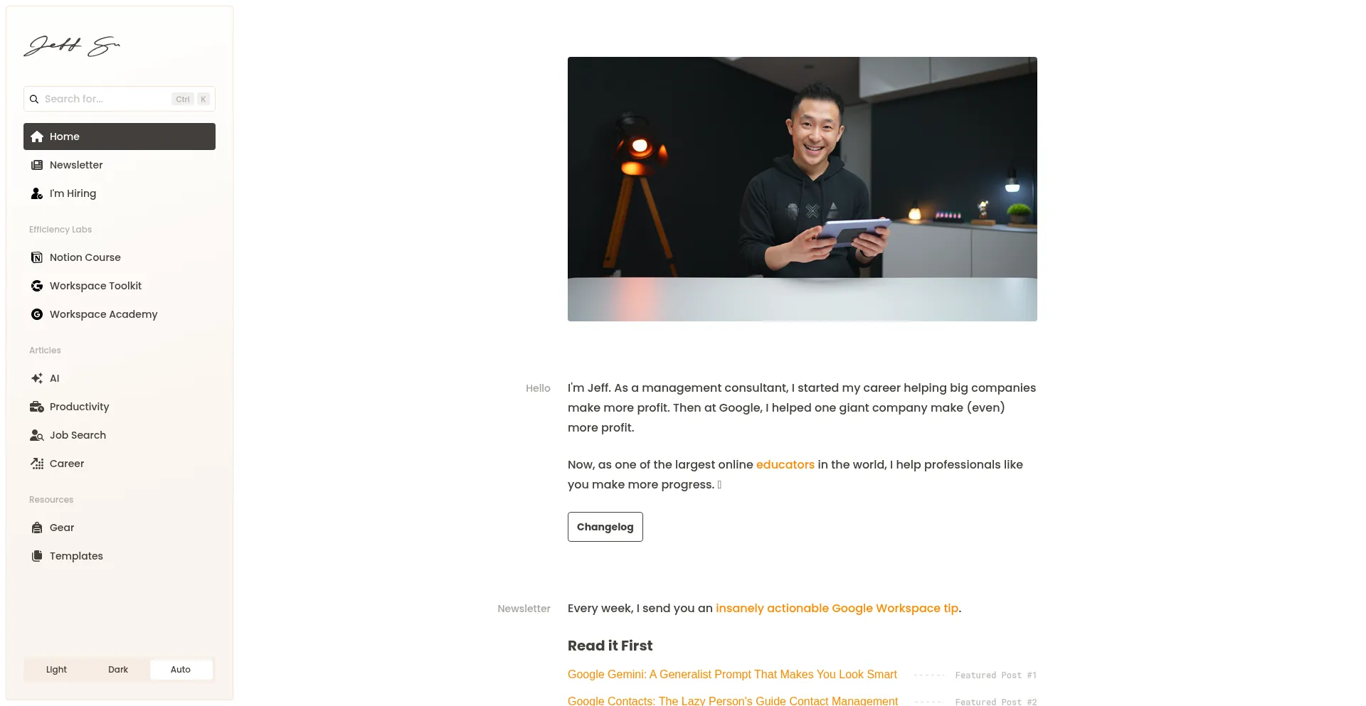I'm Jeff. I'm a full-time Product Marketer and a part-time YouTuber. Come for the productivity tips and stay for the sarcastic comments