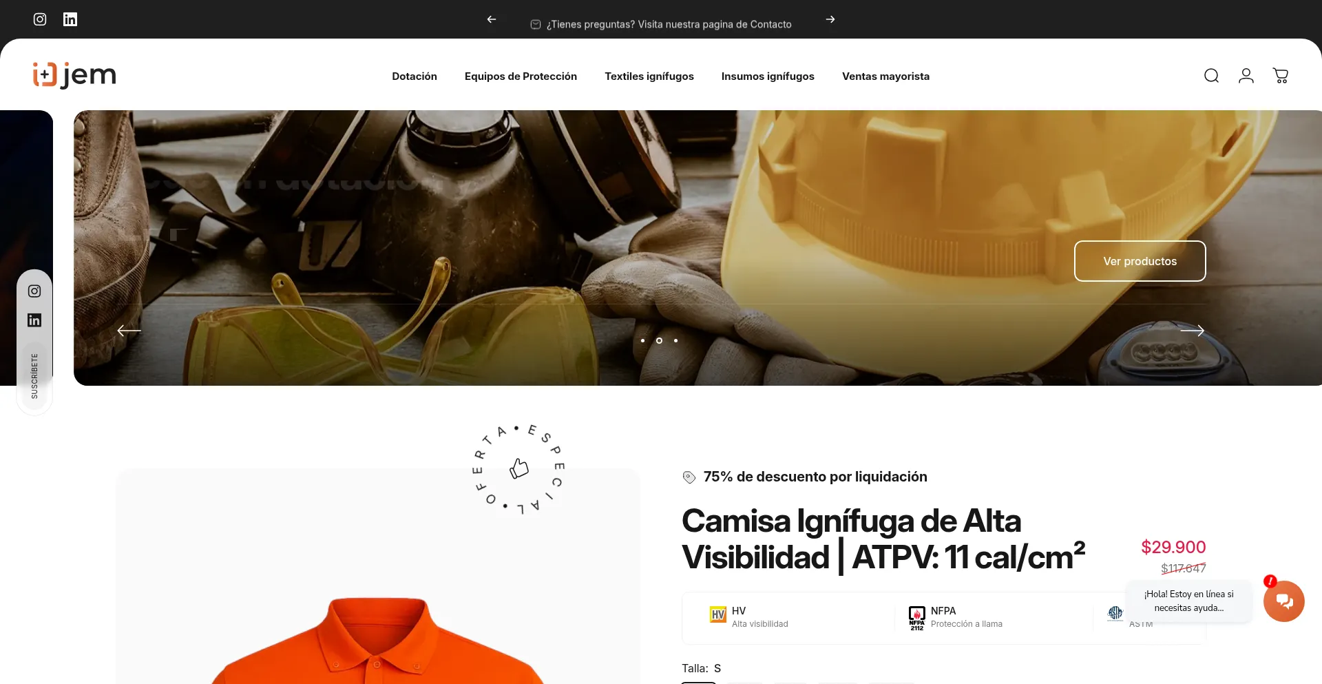 i+JEM | Dotación convencional, ignífuga y de alta visibilidad (HV). Equipos de Protección Personal (EPP). Textiles ignífugos. Insumos ignífugos. Envío a todo Colombia.