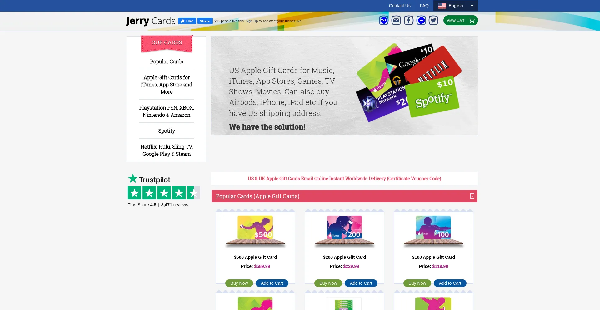 Jerry Cards - Buy US Apple Gift Cards Instant Online