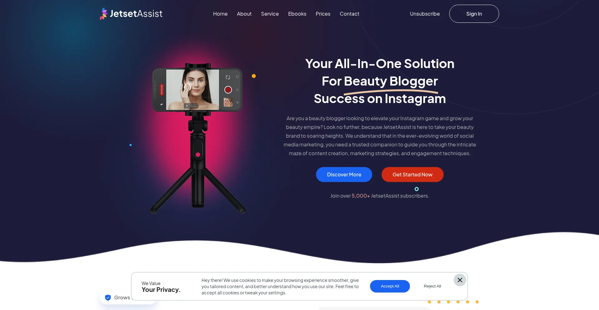 该网站实现符合GDPR或CCPA等隐私法规的cookie同意机制。这表明 jetsetassist.com 遵守数据保护标准并为用户提供对个人数据收集实践的控制。