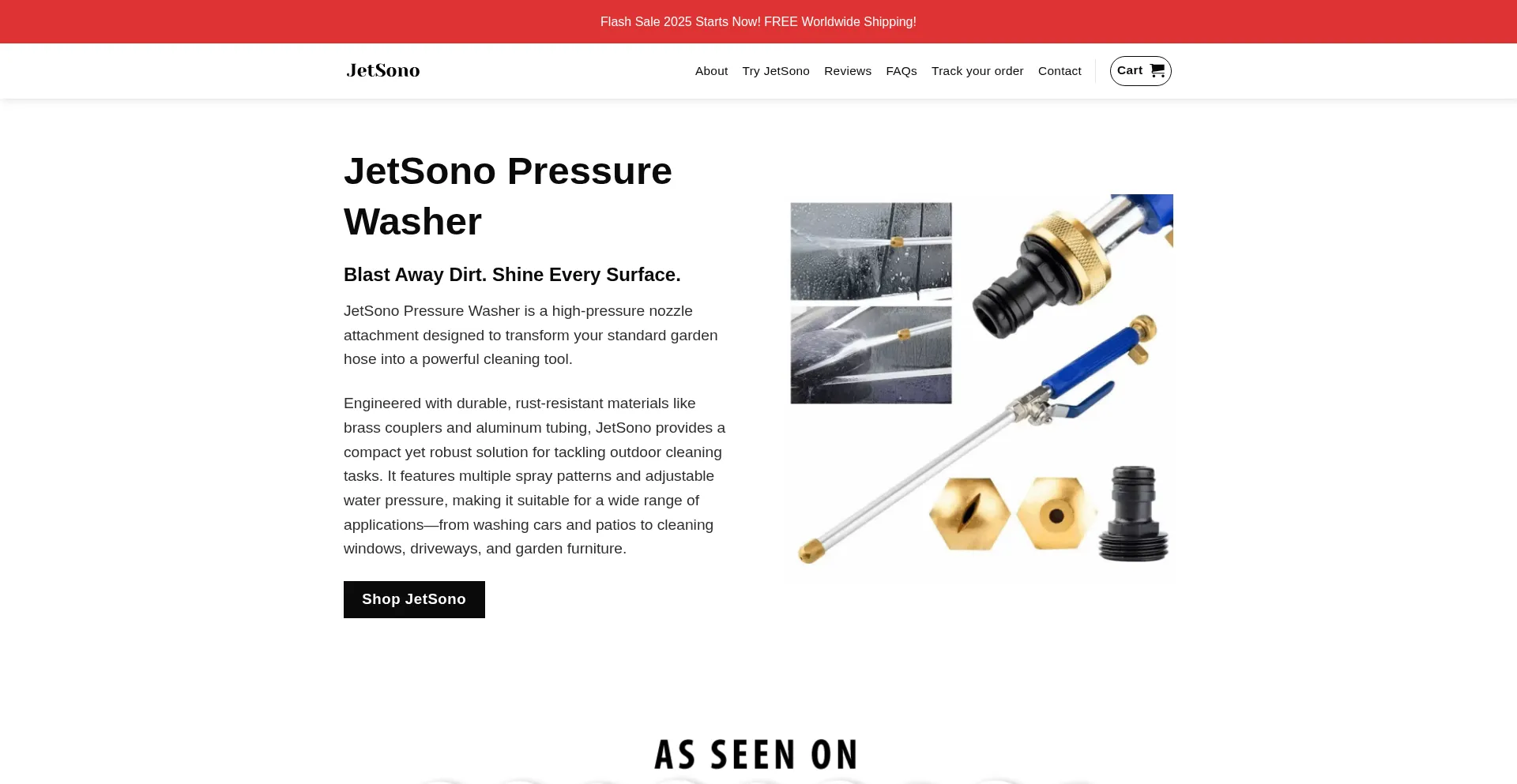 JetSono is a durable, rust-resistant nozzle attachment that fits standard garden hoses and features two interchangeable spray tips. Designed for efficient outdoor cleaning, it d...