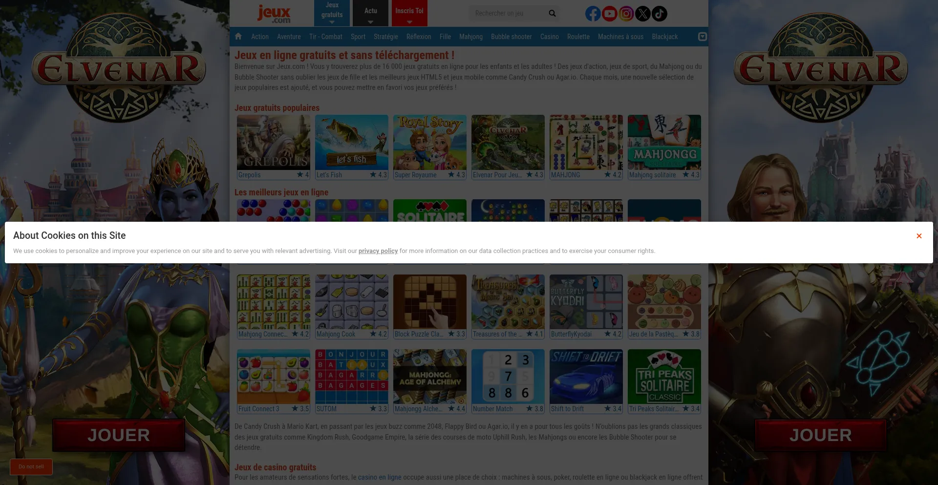 该网站实现符合GDPR或CCPA等隐私法规的cookie同意机制。这表明 jeux.com 遵守数据保护标准并为用户提供对个人数据收集实践的控制。
