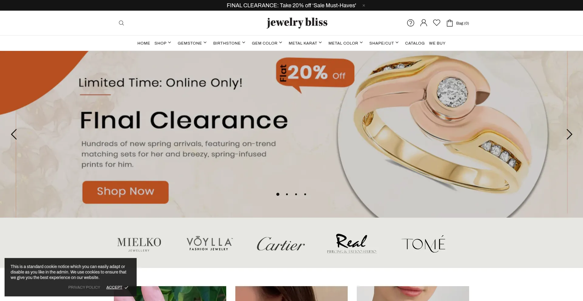 该网站实现符合GDPR或CCPA等隐私法规的cookie同意机制。这表明 jewelrybliss.com 遵守数据保护标准并为用户提供对个人数据收集实践的控制。