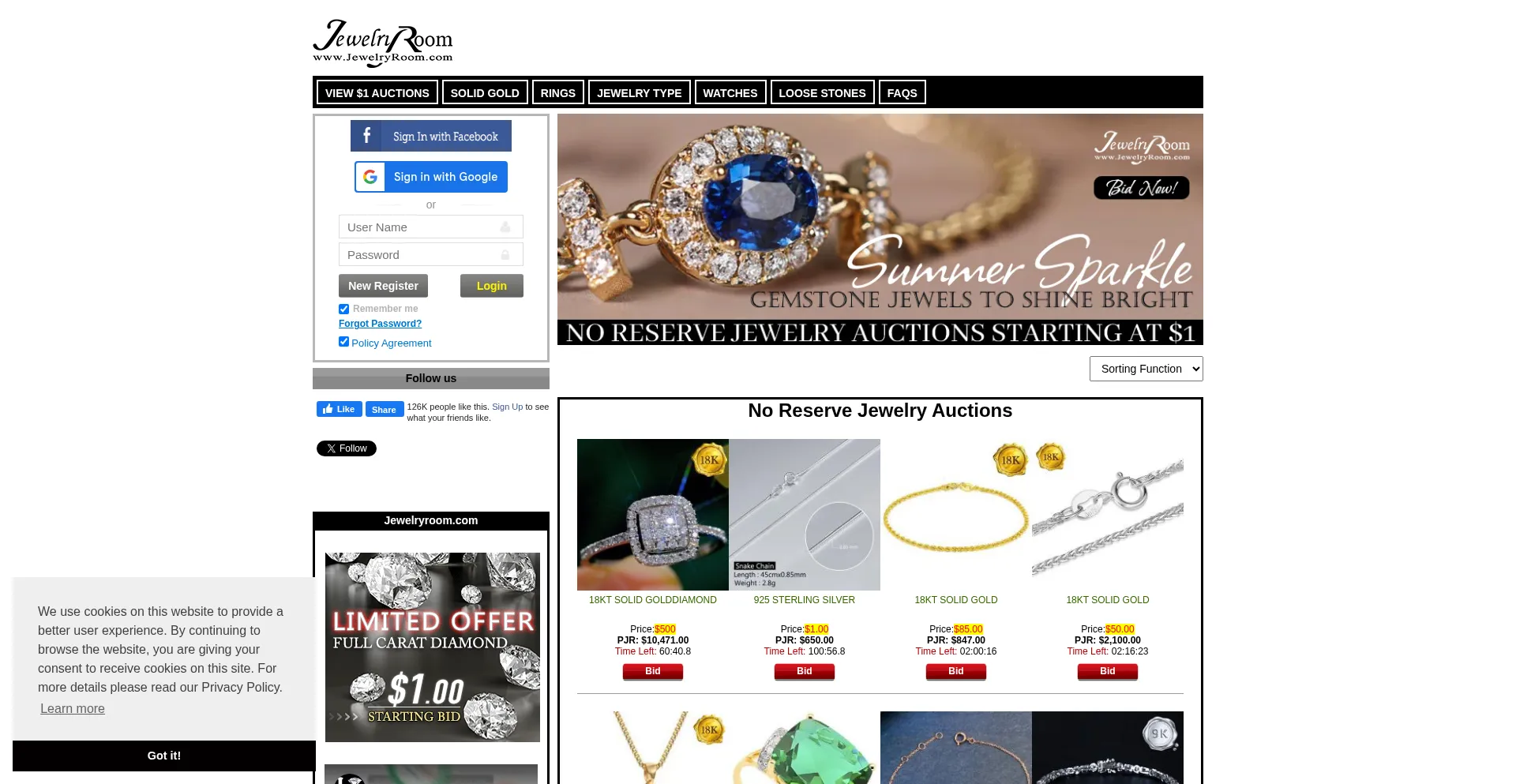 Bid on Jewelry Auctions at Jewelryroom. Authentic solid gold and sterling silver diamond jewelry. Save up to 70% discount off retail prices in online jewelry auction.