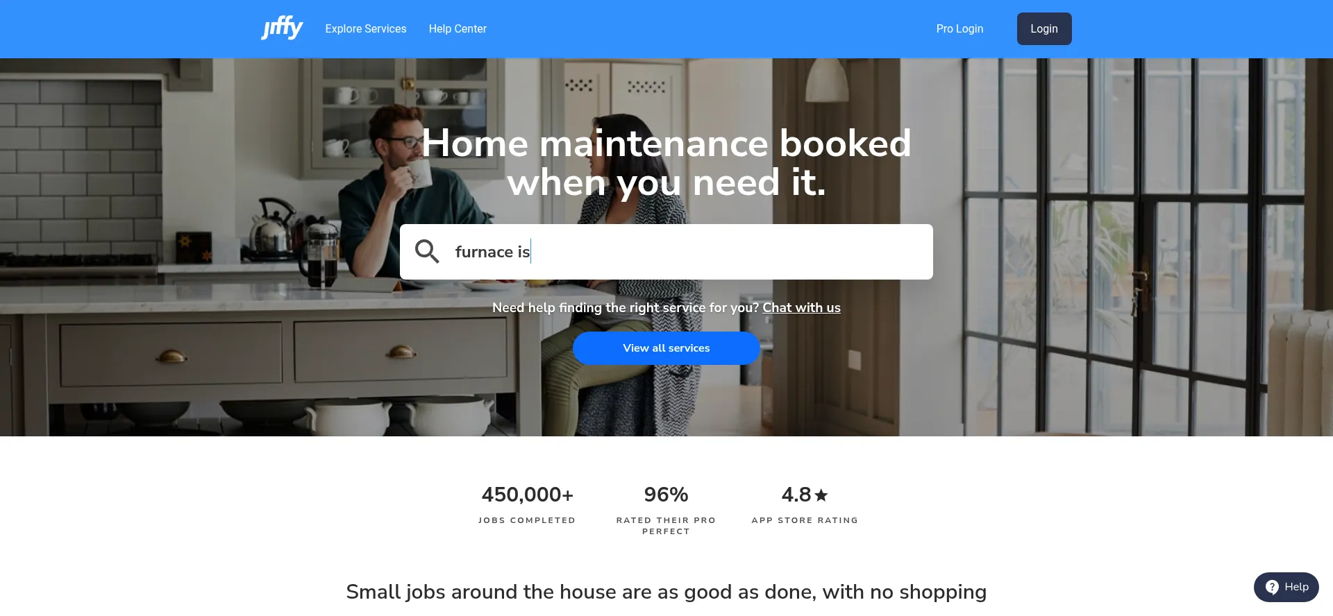 Jiffy is a web and mobile platform that connects homeowners with service providers in real time, based on proximity and availability.