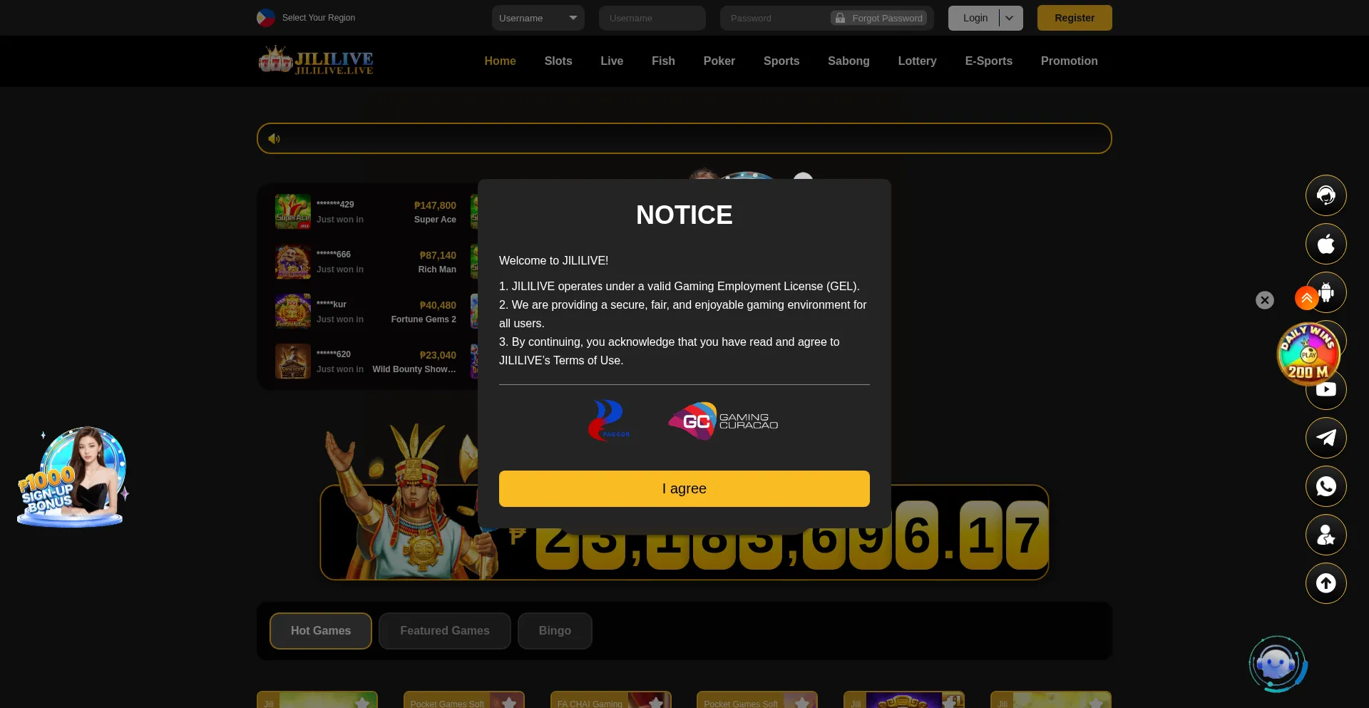 Welcome to JILILIVE ,The casino with difference Experience the best mobile casino in Asia, operating 24/7 with live commentary. Dive into a world of excitement and entertainment...
