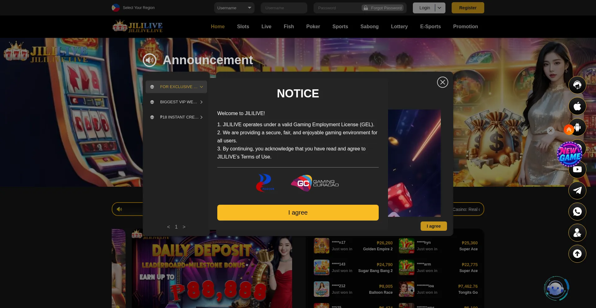 Welcome to JILILIVE ,The casino with difference Experience the best mobile casino in Asia, operating 24/7 with live commentary. Dive into a world of excitement and entertainment...