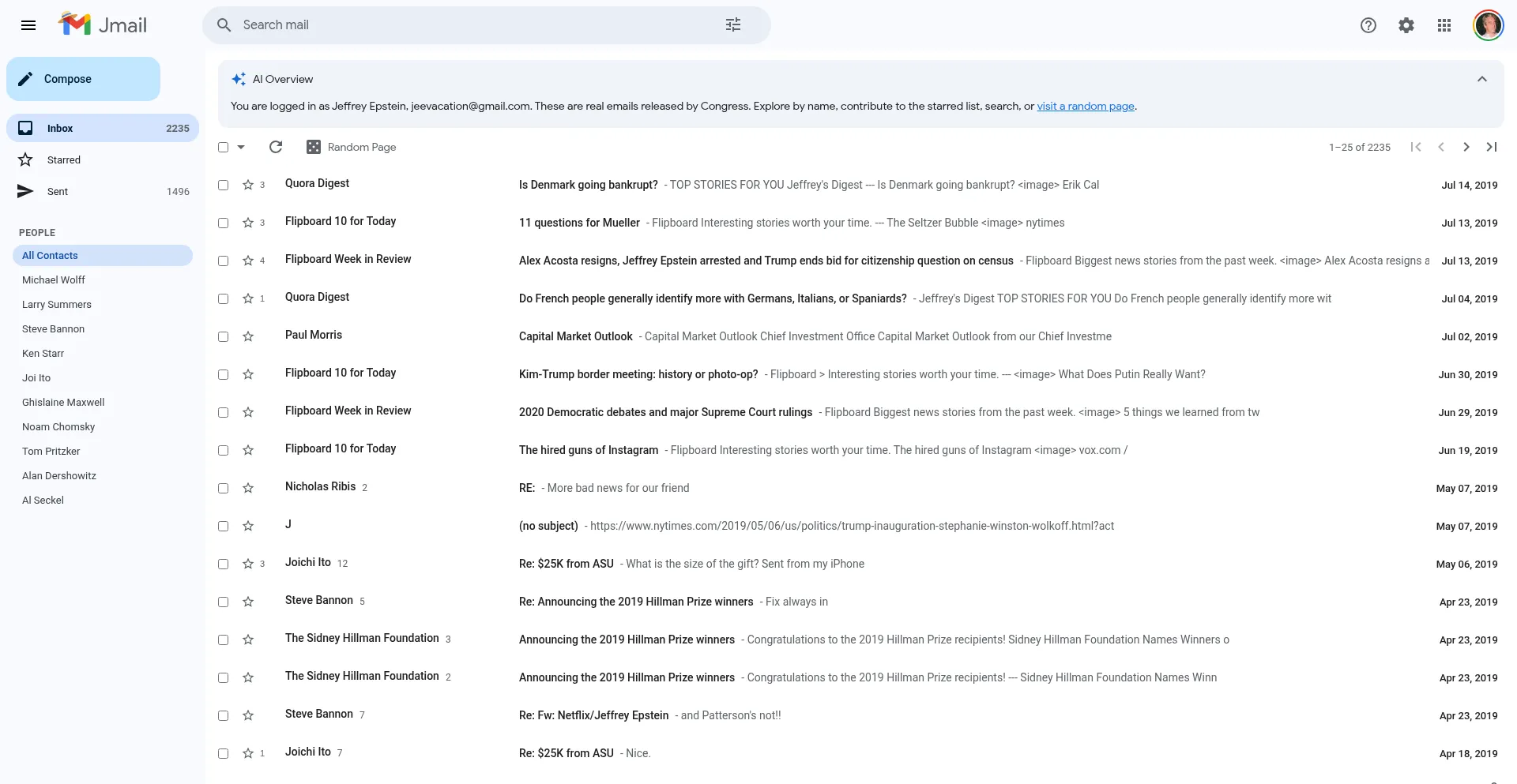 You are logged into [email protected], Jeffrey Epstein's email. Sourced from the November 2025 House Oversight Committee data release.