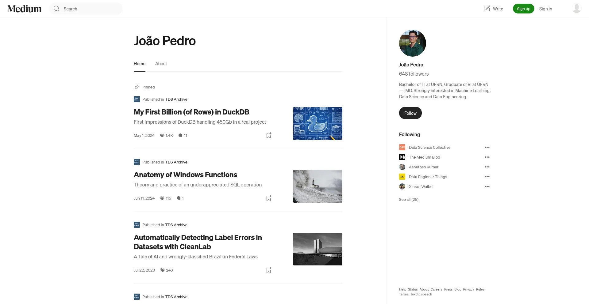 Read writing from João Pedro on Medium. Bachelor of IT at UFRN. Graduate of BI at UFRN — IMD. Strongly interested in Machine Learning, Data Science and Data Engineering.