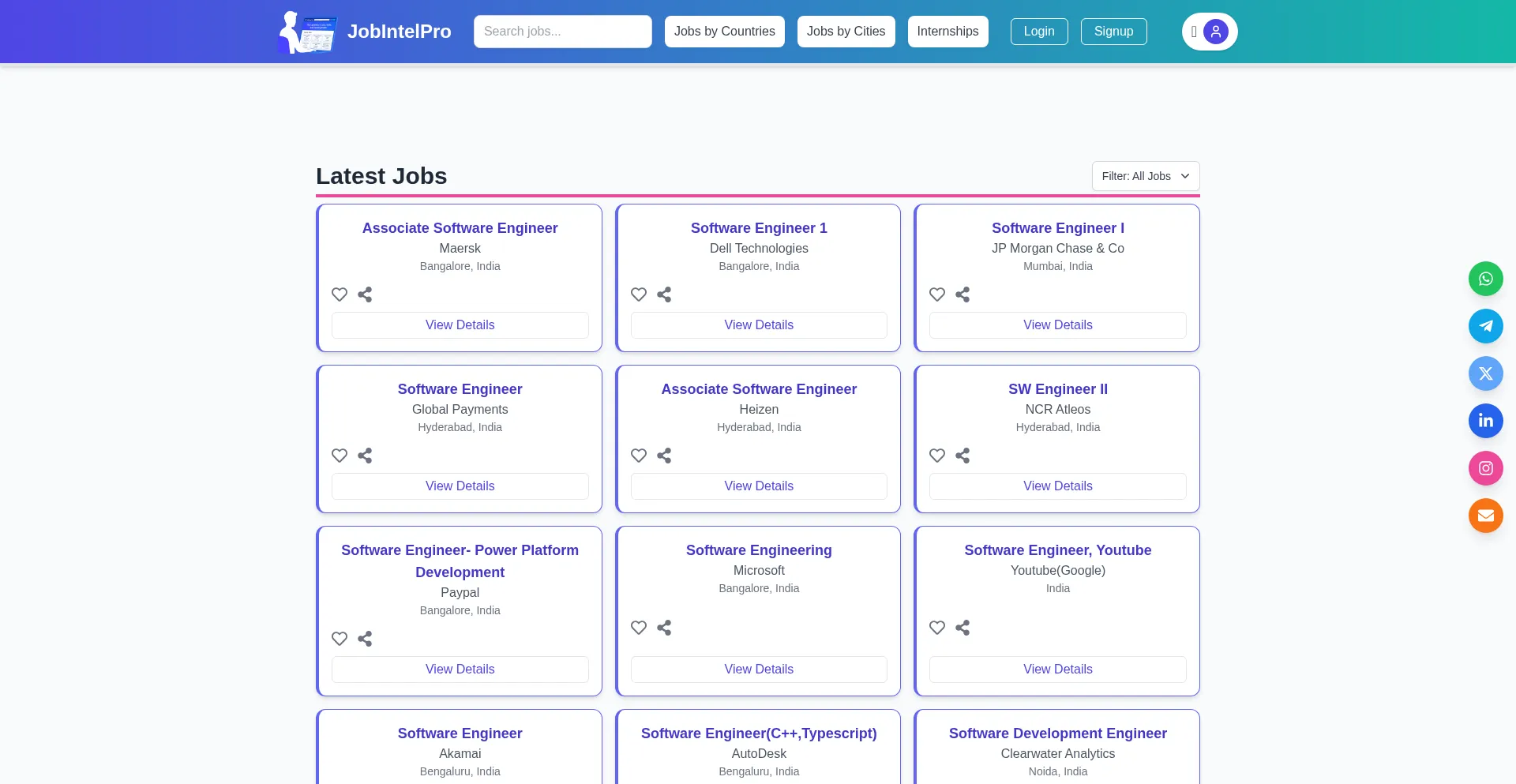 网站上存在社交媒体链接表明 jobintelpro.com 在社交媒体上维护官方账户,这是可信度和参与度的积极信号。