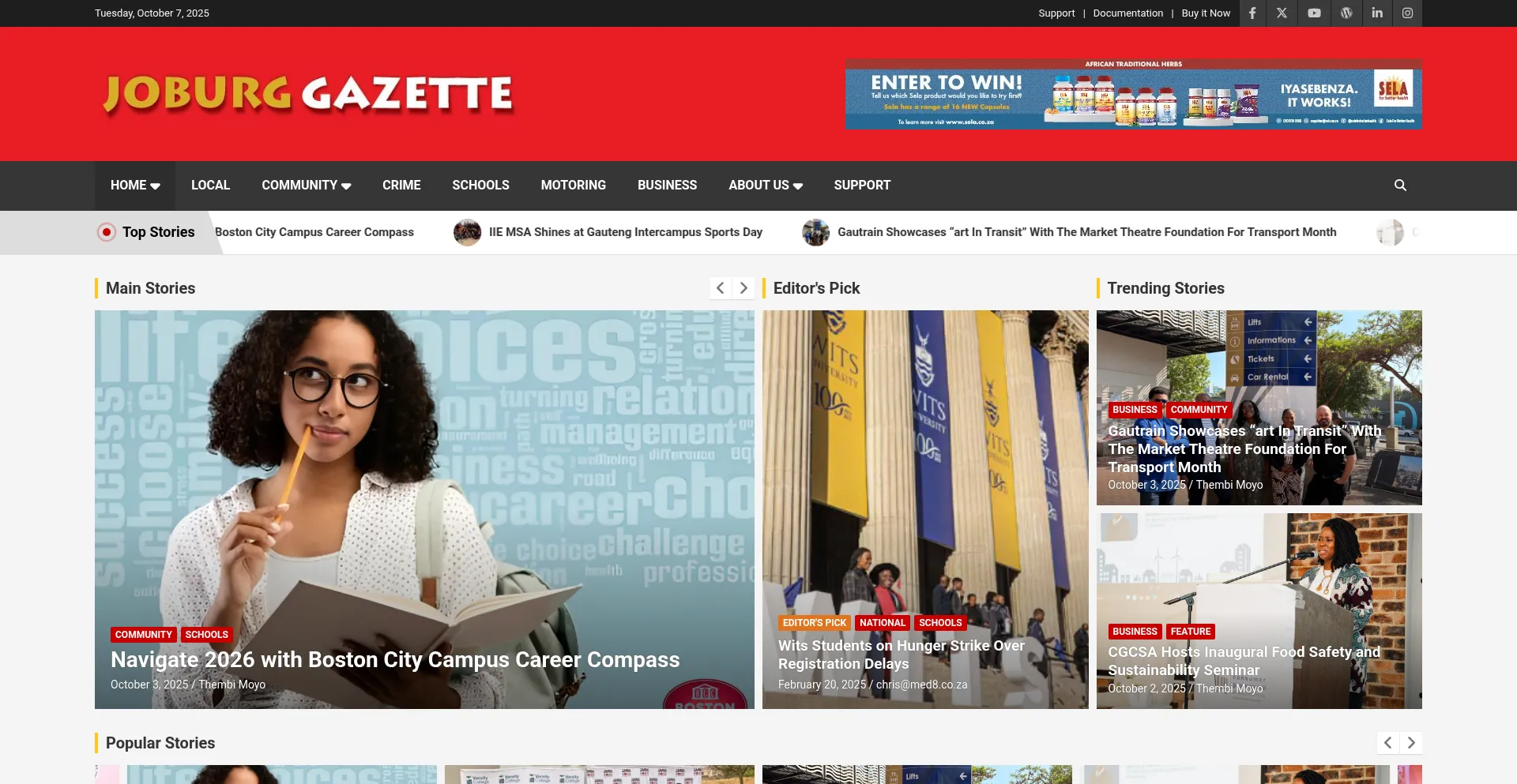 分析显示 joburg-gazette.co.za 显示社交媒体图标或链接,但不连接到合法的社交媒体档案。这种欺骗性做法通常用于创造虚假合法性,代表需要立即谨慎的欺诈意图的重要指标。