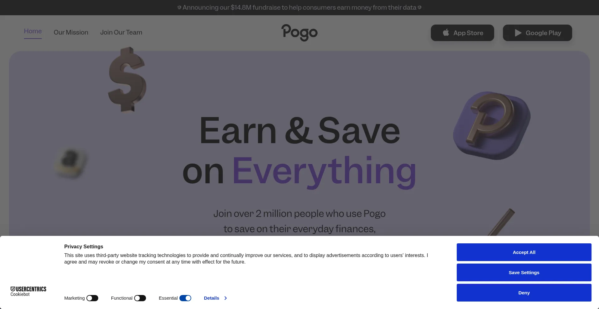 Unlock the power of your data to earn and save on shopping, finances and more. Download the Pogo app today to start earning and saving cash. 4.9 stars in the App Store.