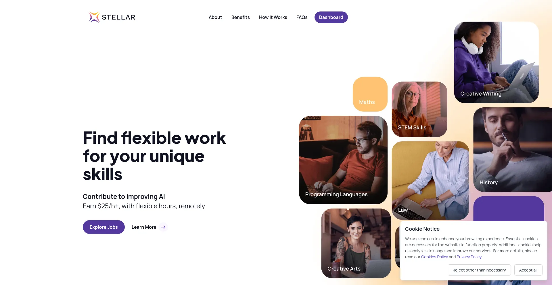 该网站实现符合GDPR或CCPA等隐私法规的cookie同意机制。这表明 joinstellar.ai 遵守数据保护标准并为用户提供对个人数据收集实践的控制。