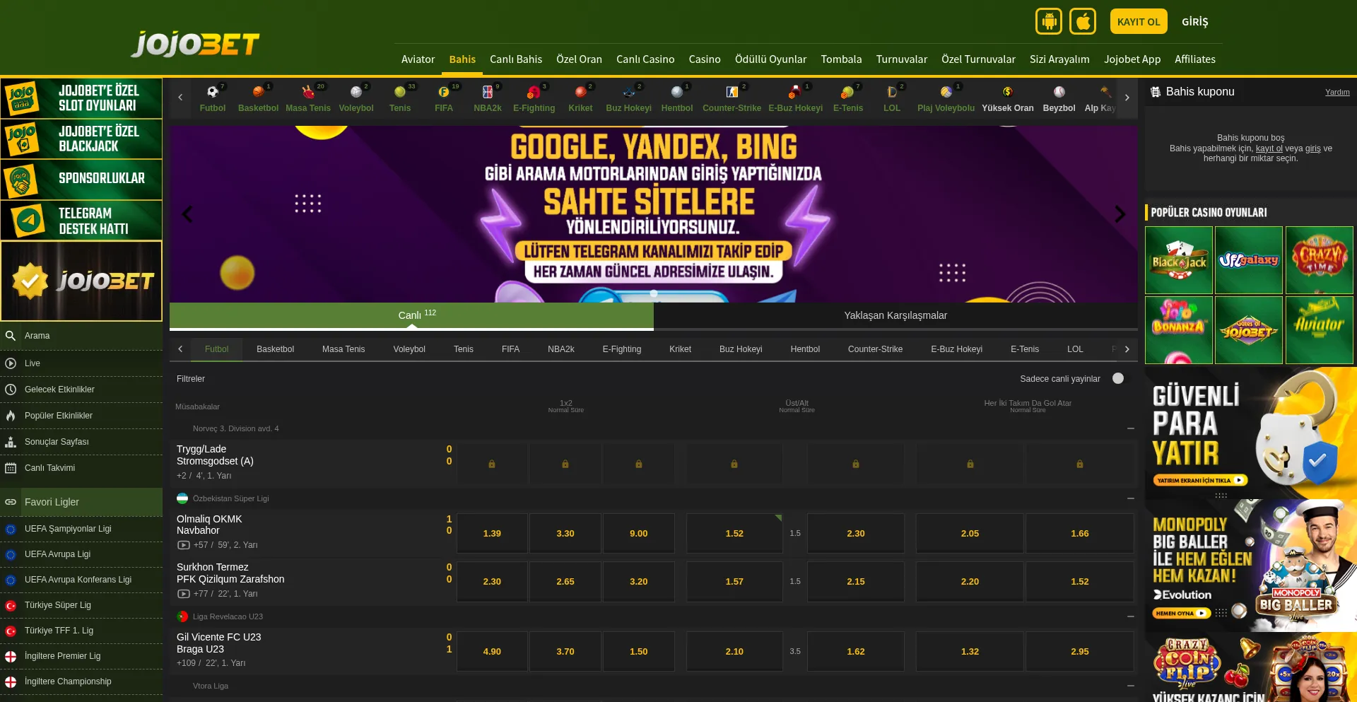 Jojobet Güvenilir Canlı Bahis Sitesi Jojobet giriş yaparak casino oynayabilir, Jojobet farklıyla yüksek bahis oranlarıyla kuponlarınızı yapabilirsiniz