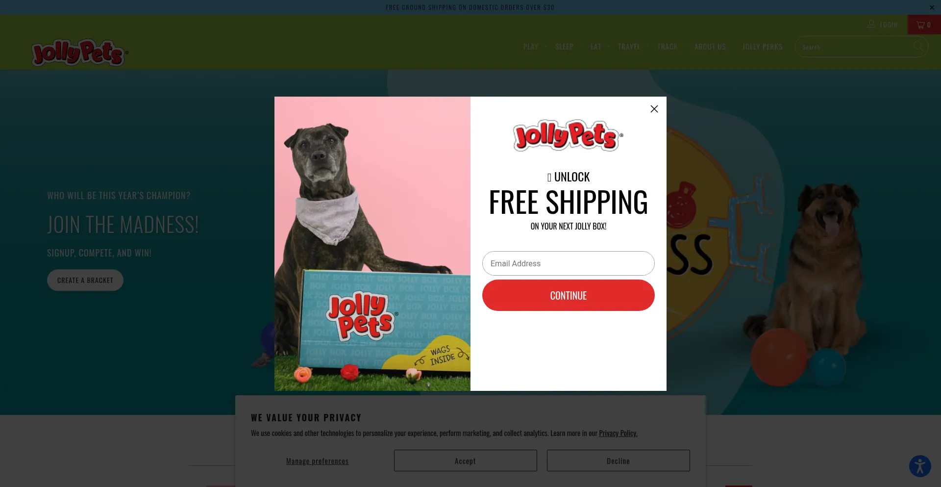该网站实现符合GDPR或CCPA等隐私法规的cookie同意机制。这表明 jollypets.com 遵守数据保护标准并为用户提供对个人数据收集实践的控制。