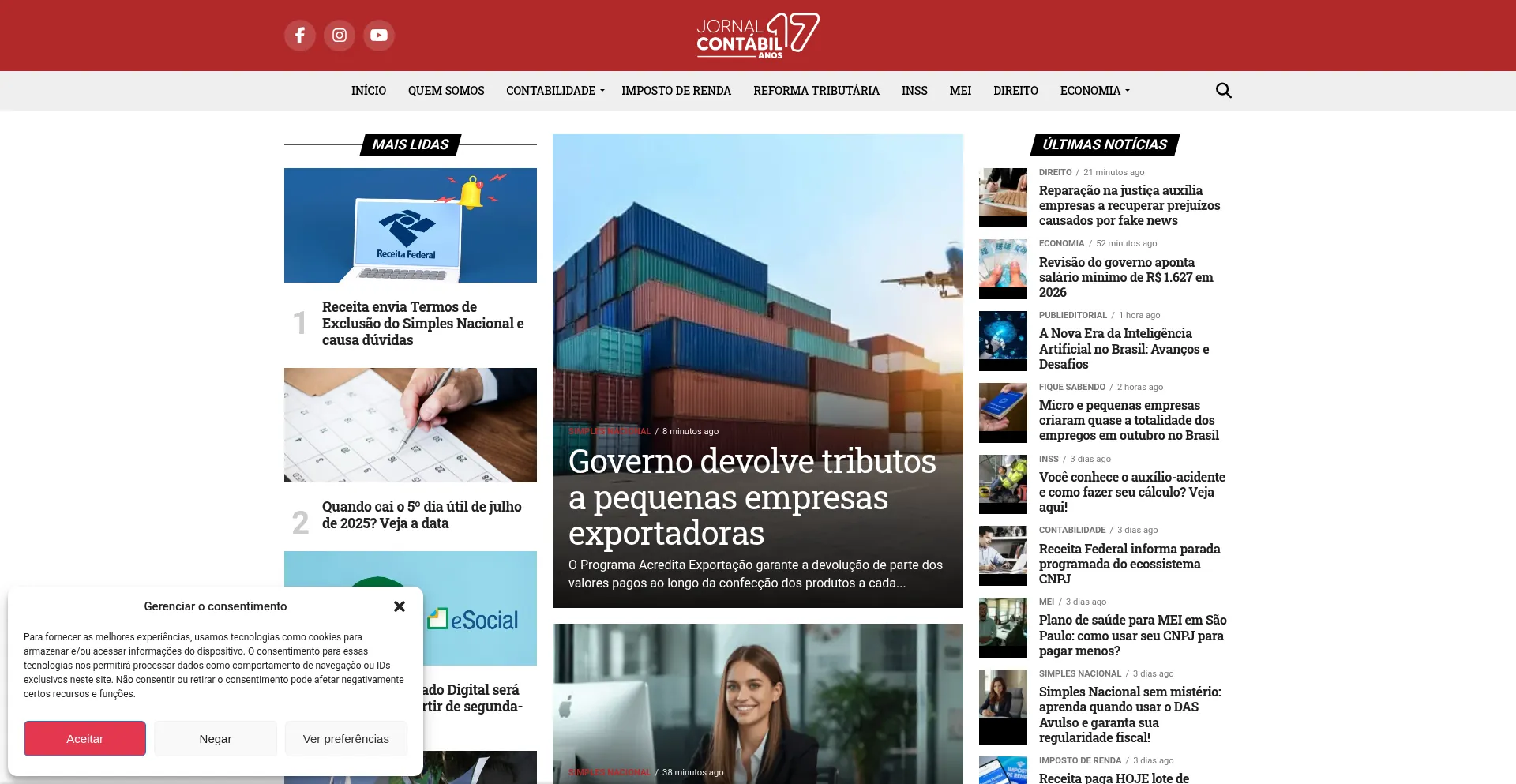 Fique por dentro das últimas notícias e novidades do mundo contábil e empresarial com o Jornal Contábil. Análises, legislação, prazos e tudo que você precisa para sua ro...