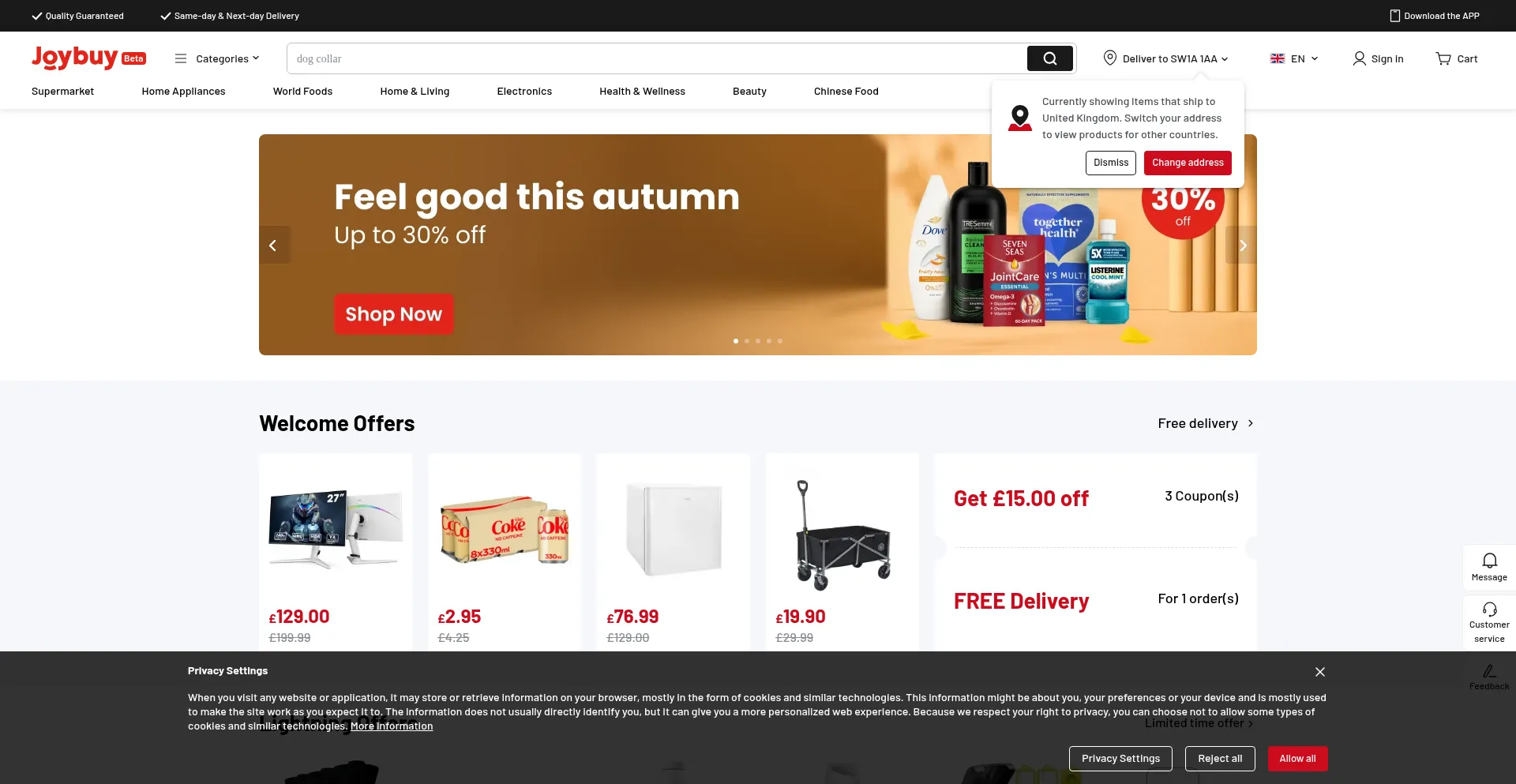 该网站实现符合GDPR或CCPA等隐私法规的cookie同意机制。这表明 joybuy.co.uk 遵守数据保护标准并为用户提供对个人数据收集实践的控制。