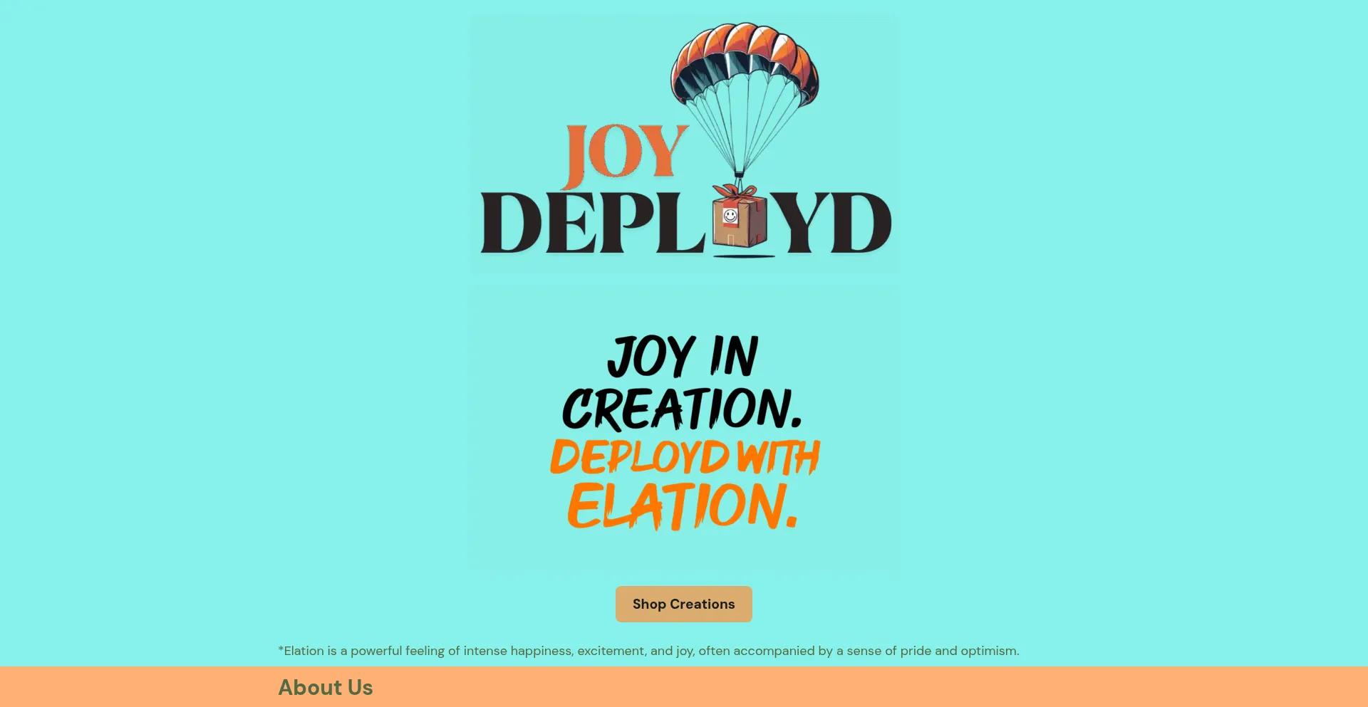Shop Creations *Elation is a powerful feeling of intense happiness, excitement, and joy, often accompanied by a sense of pride and optimism. About Us Joy
