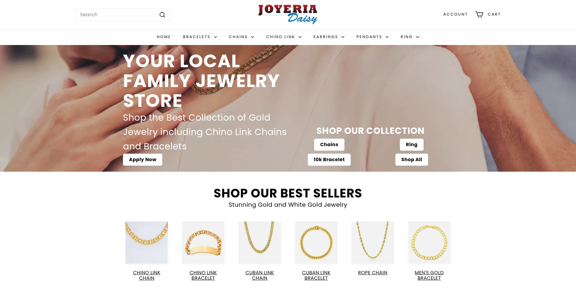 Shop elegant Chino Link, Cuban Link, gold, silver, and diamond rings, necklaces, bracelets, and earrings at Joyeria Daisy. Flexible payment plans with Merge Stream!