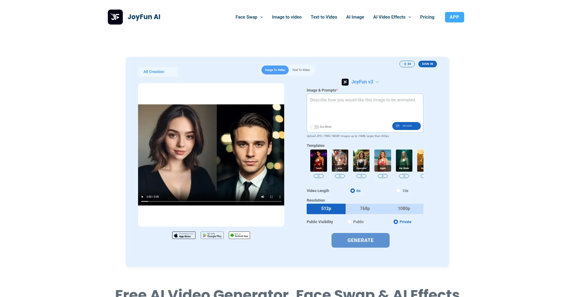 Free AI Video Generator, Face Swap & Effects | Joyfun AI