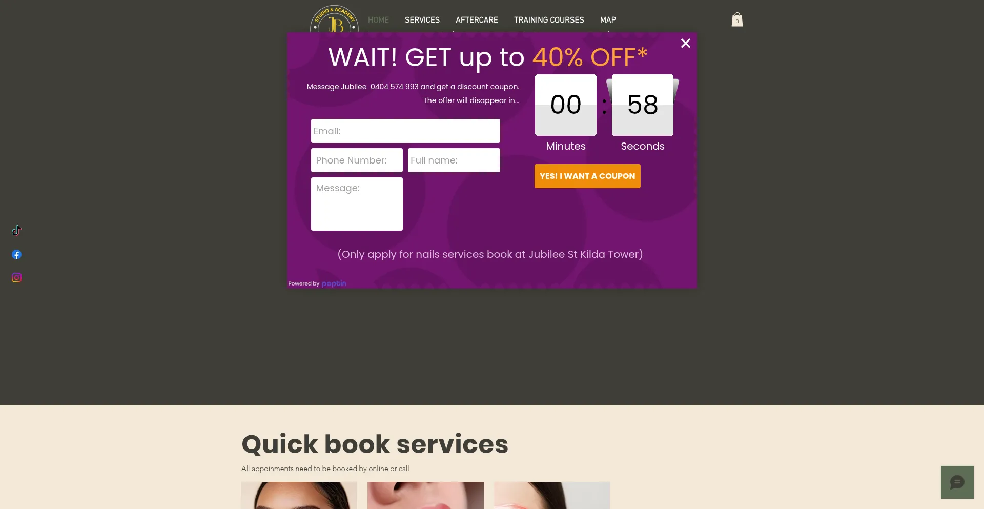该网站实现数据收集表单,请求个人信息,包括姓名、电子邮件地址、电话号码或其他敏感详细信息。用户应验证 jubileebeauty.com.au 的合法性并在提交个人数据前查看隐私政策。