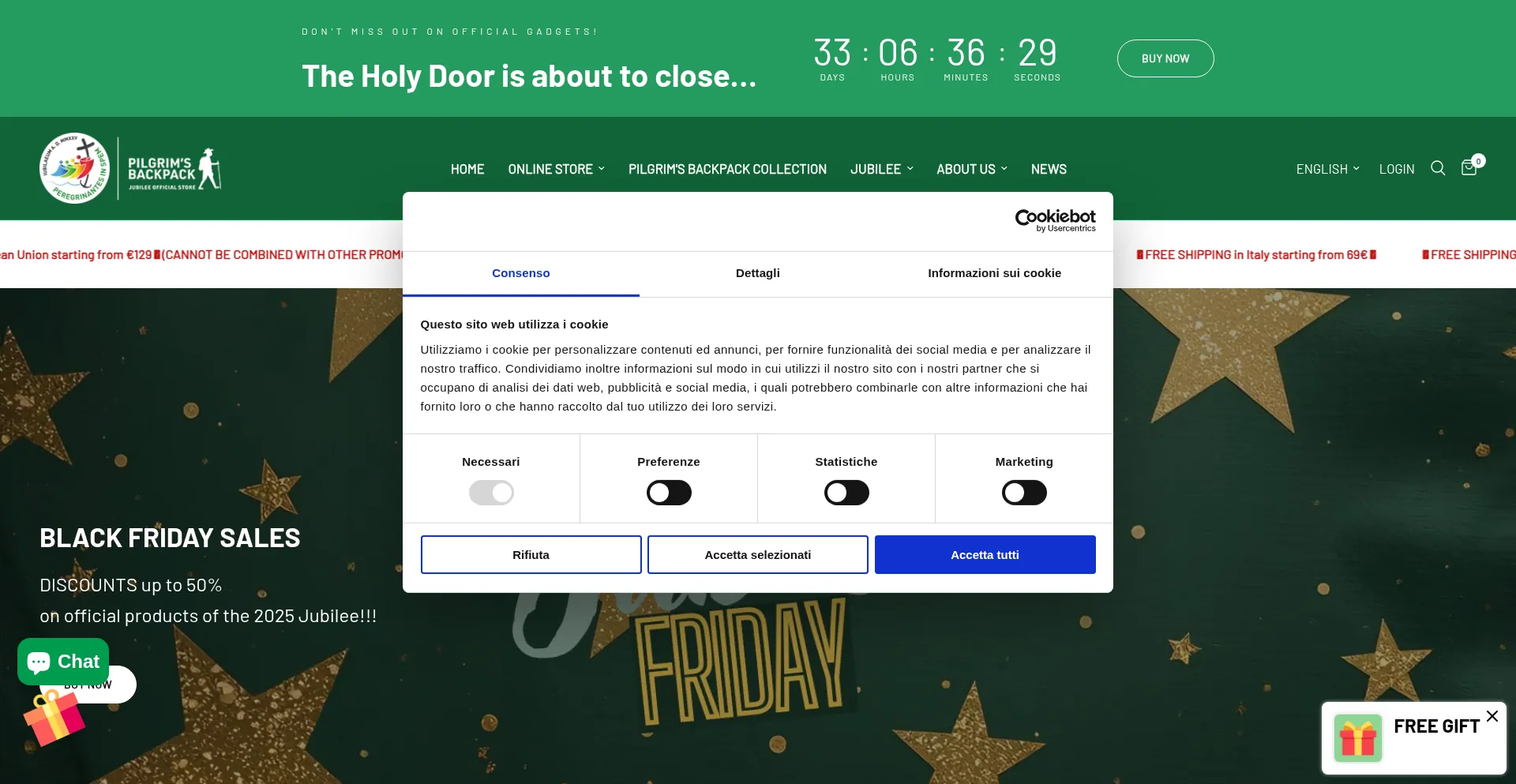 Discover the official merchandising of the Jubilee 2025: the pilgrim's backpack, gadgets and clothing, to always carry the memory of the pilgrimage with you.
