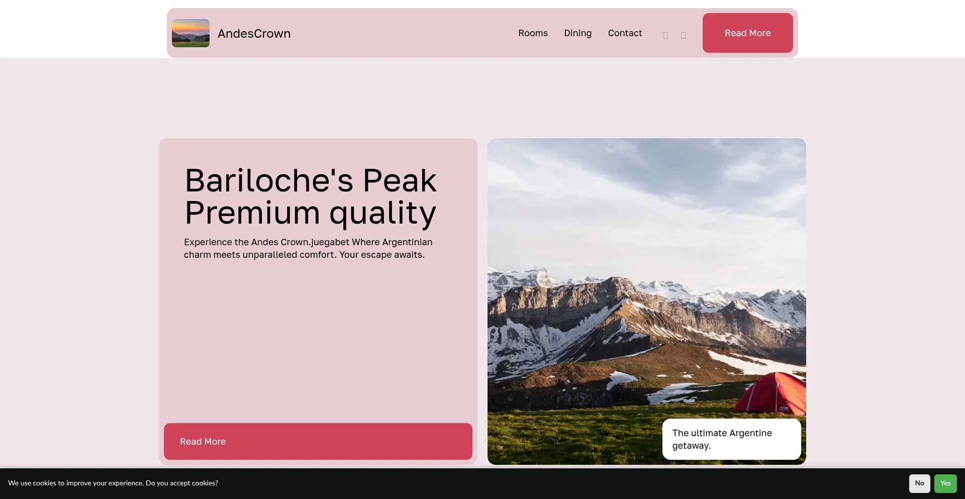 English business website for Hotel Andes Crown, a luxury hotel in Bariloche, tailored for Argentine travelers.