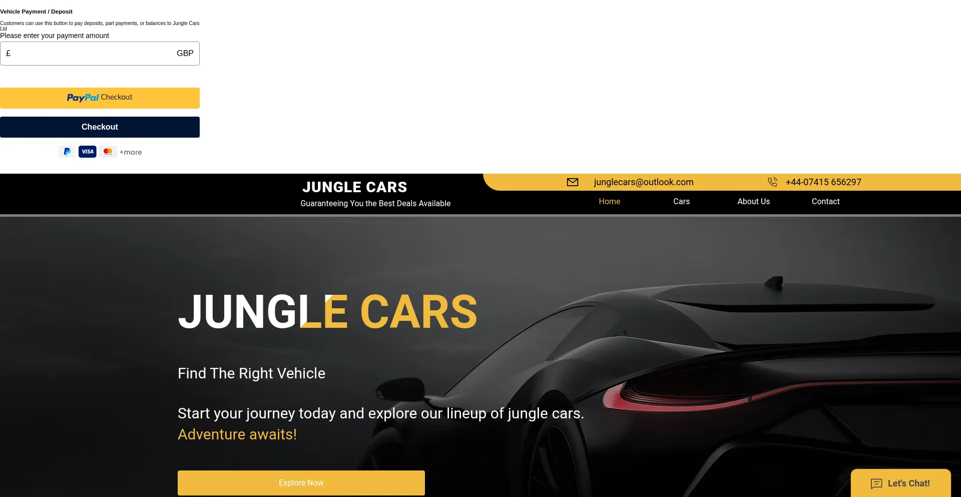 该网站实现数据收集表单,请求个人信息,包括姓名、电子邮件地址、电话号码或其他敏感详细信息。用户应验证 junglecars.co.uk 的合法性并在提交个人数据前查看隐私政策。