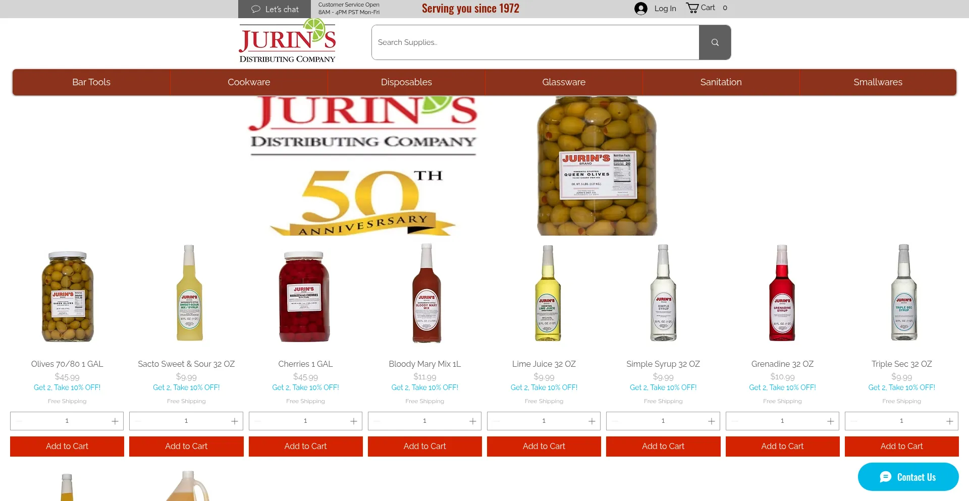 Serving you with quality restaurant and bar supply since 1972. Jurin's Distributing is family owned and operated.