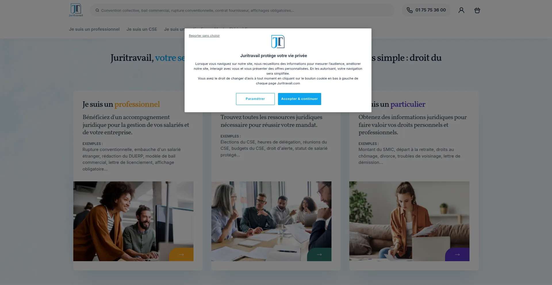 该网站实现符合GDPR或CCPA等隐私法规的cookie同意机制。这表明 juritravail.com 遵守数据保护标准并为用户提供对个人数据收集实践的控制。