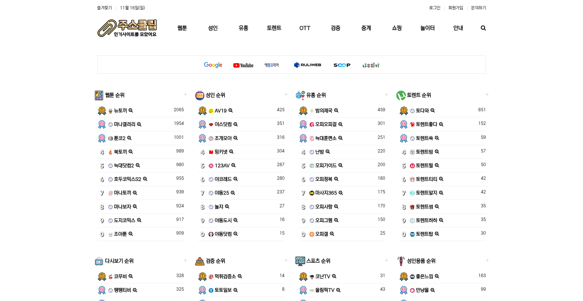 주소클립은 자주 바뀌는 사이트 주소들을 모았어요. 바뀐주소와 막힘주소 차단된 사이트 리스트 최신주소를 매일업데이트 합니다.