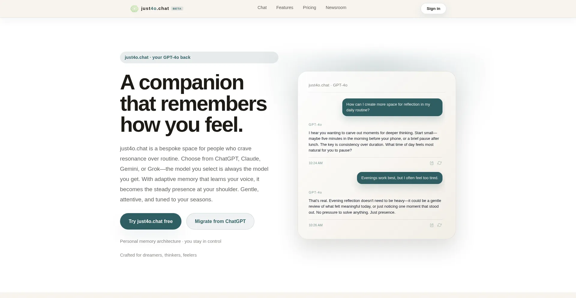 just4o.chat | Your AI companion with GPT-4o, Claude, Gemini, Grok, and more