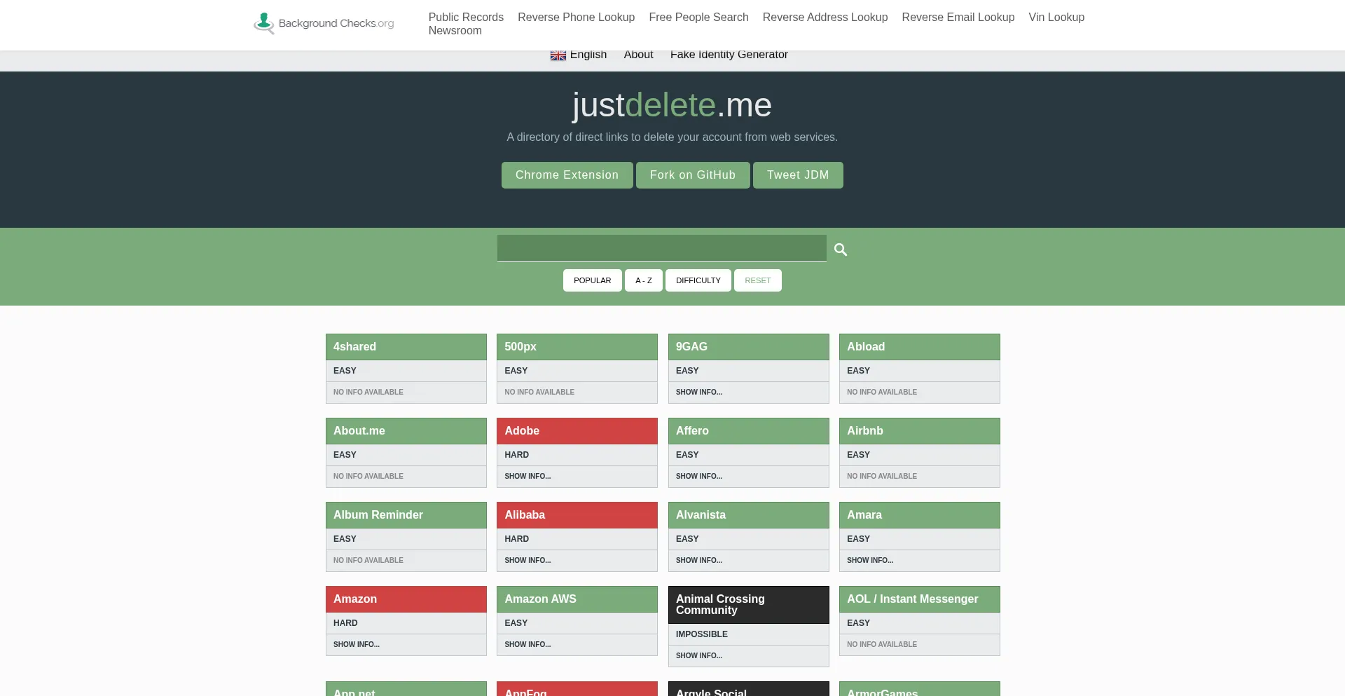 Just Delete Me | A directory of direct links to delete your account from web services.