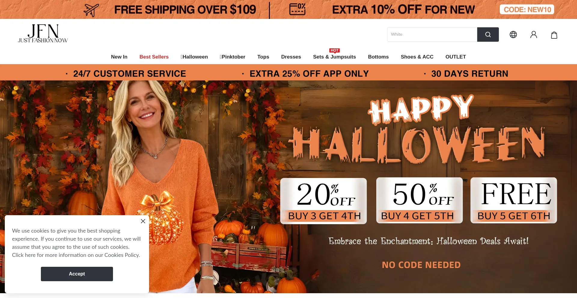 该网站实现符合GDPR或CCPA等隐私法规的cookie同意机制。这表明 justfashionnow.com 遵守数据保护标准并为用户提供对个人数据收集实践的控制。