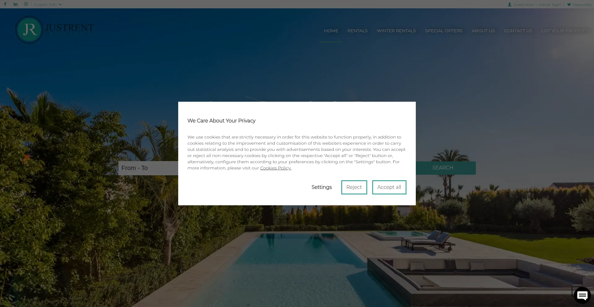 该网站实现符合GDPR或CCPA等隐私法规的cookie同意机制。这表明 justrentmarbella.com 遵守数据保护标准并为用户提供对个人数据收集实践的控制。