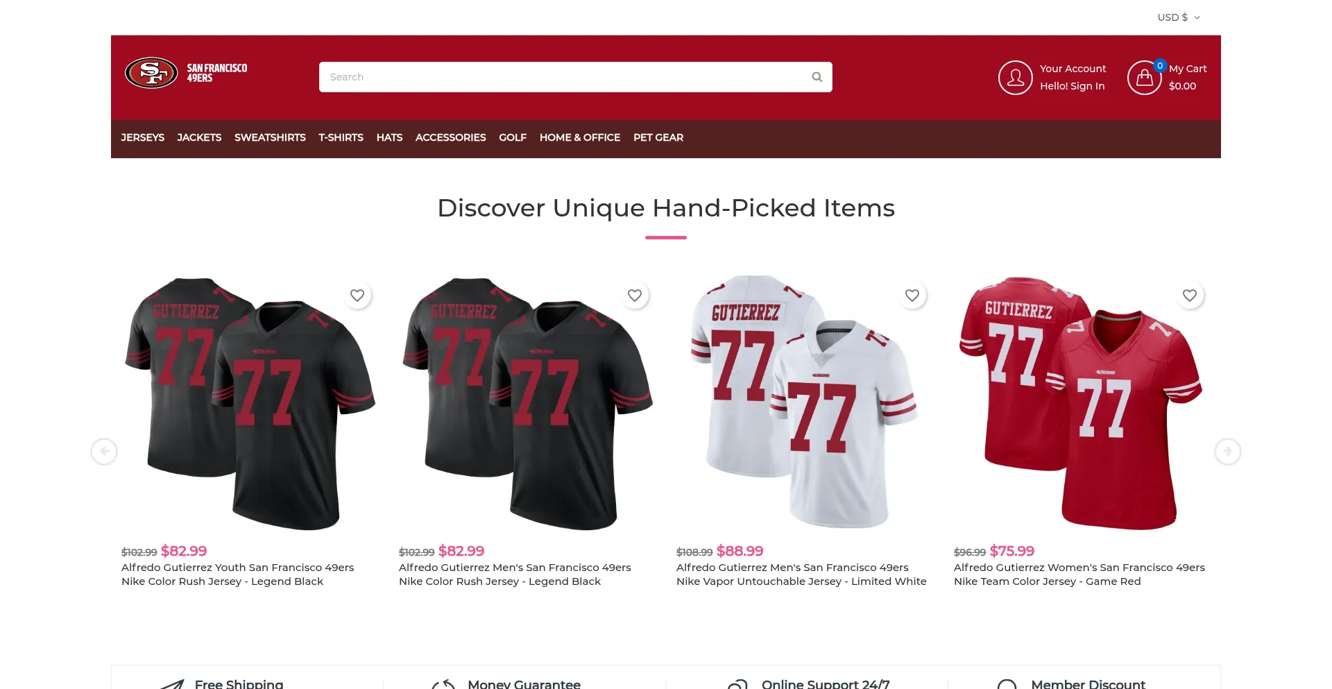 该网站利用流行产品名称和品牌来吸引流量并产生用户兴趣。这些产品可能通过促销活动或折扣策略提供,旨在增加 justshop49ers.com 的访客参与度和转化率。