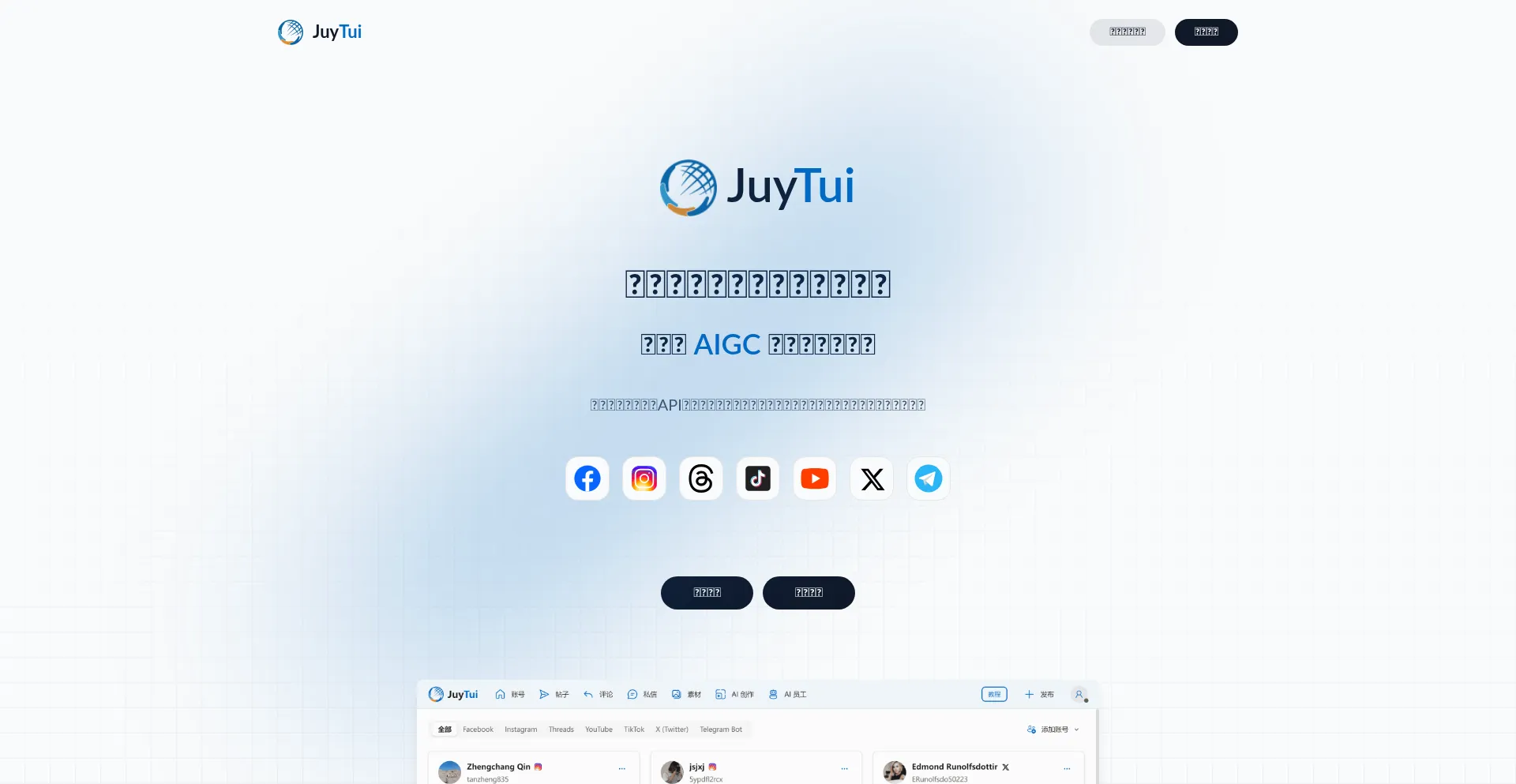 Juytui 全球社媒一站式管理平台,是国内最大的内容出海平台,通过与平台官方API对接合作,能帮助创作者轻松拓展海外全球媒体,一�...