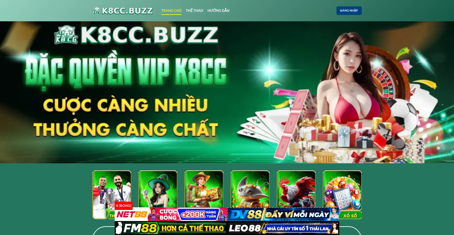 K8CC là nhà cái cá cược hàng đầu châu Á 2025, mang đến trải nghiệm đỉnh cao với thể thao, casino, nổ hũ, bắn cá và khuyến mãi ngập tràn h...