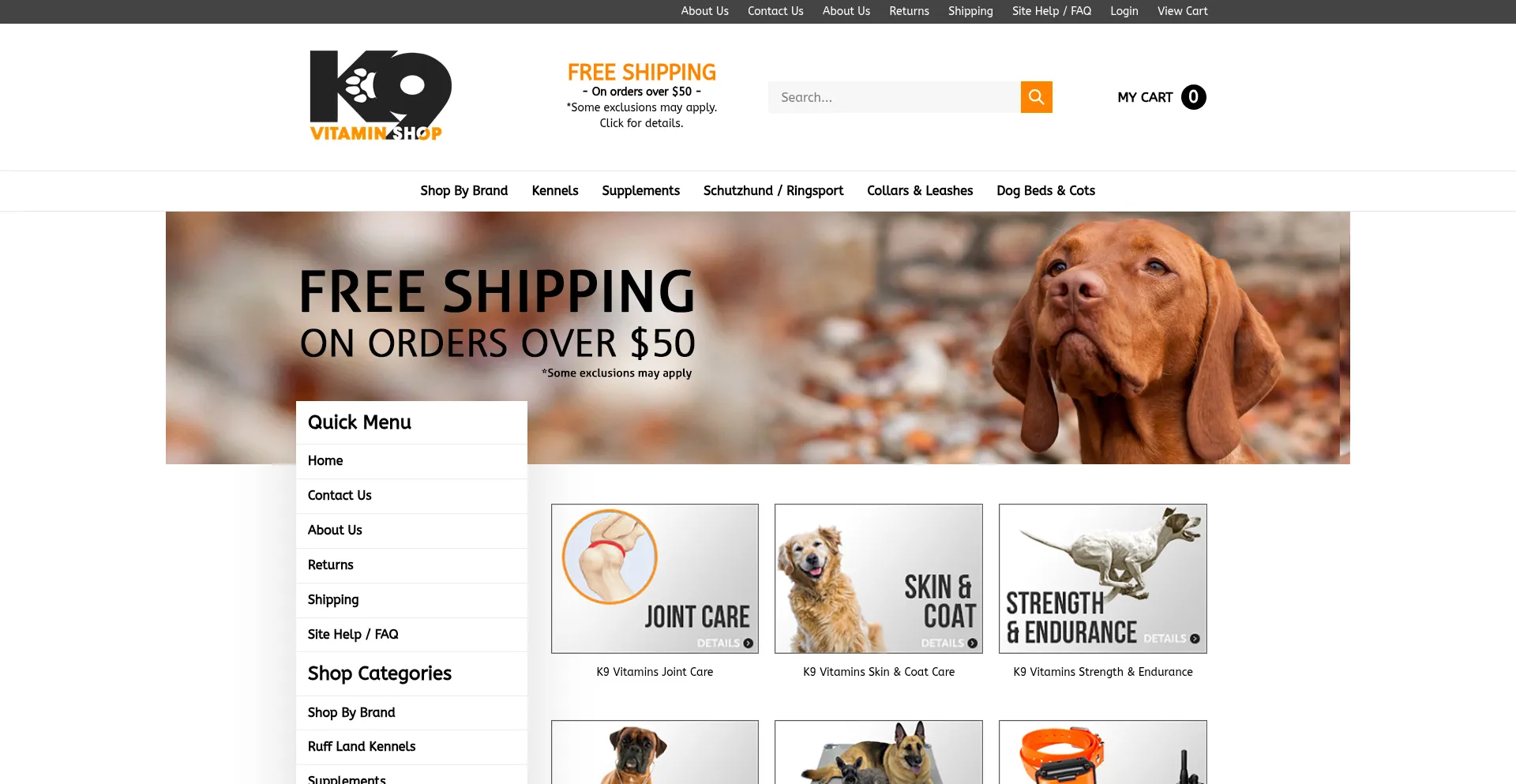 分析表明 k9vitaminshop.com 作为电子商务平台运营,促进商品或服务的在线交易。该网站实现了购物车功能、支付处理系统和产品目录功能,这些是商业零售运营的典型特征。