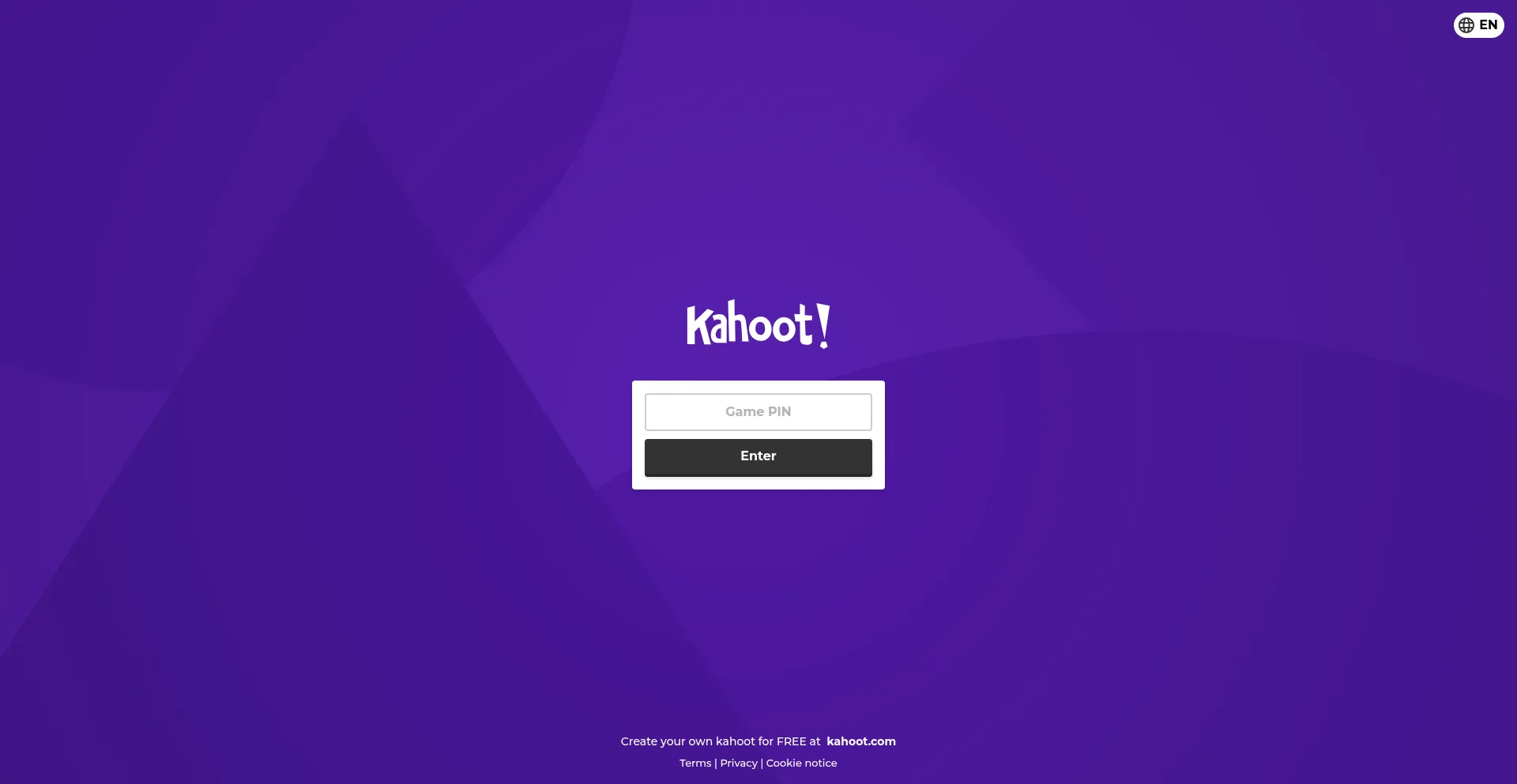 该网站实现符合GDPR或CCPA等隐私法规的cookie同意机制。这表明 kahoot.it 遵守数据保护标准并为用户提供对个人数据收集实践的控制。