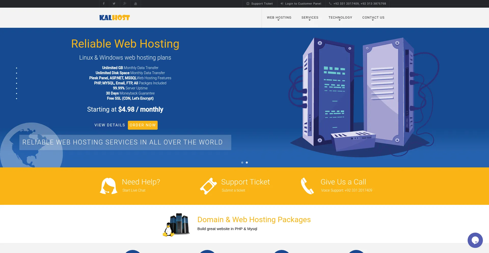 Kalhost is best Pakistan web hosting company and domain registration company. we offer affordable web hosting plan. Including php, wordpress, asp.net, sql server along with VPS ...