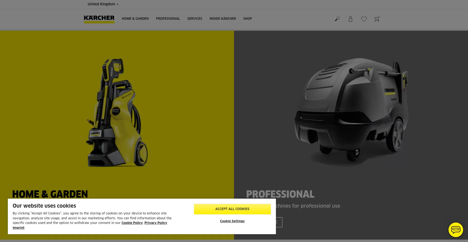 该网站实现符合GDPR或CCPA等隐私法规的cookie同意机制。这表明 karcher.co.uk 遵守数据保护标准并为用户提供对个人数据收集实践的控制。