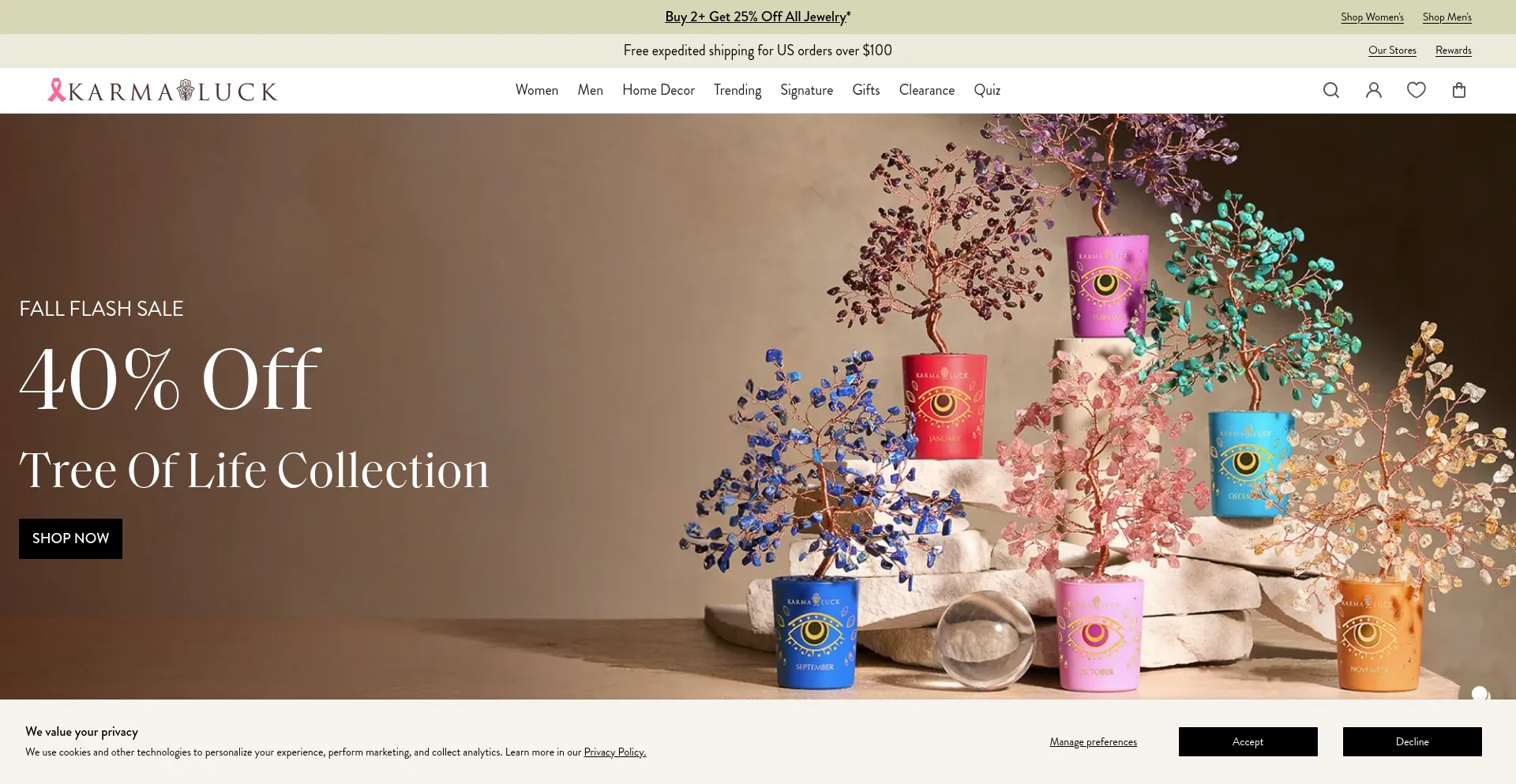 该网站实现符合GDPR或CCPA等隐私法规的cookie同意机制。这表明 karmaandluck.com 遵守数据保护标准并为用户提供对个人数据收集实践的控制。